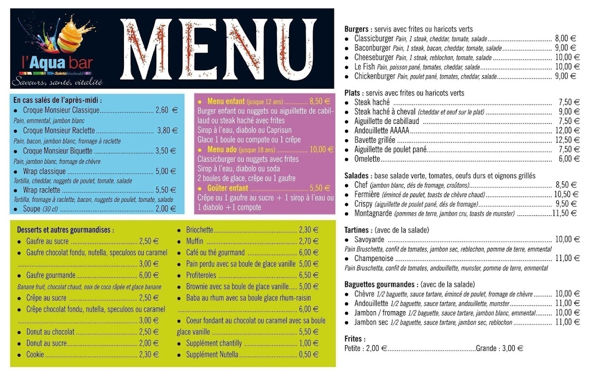 L'Aquabar Menu